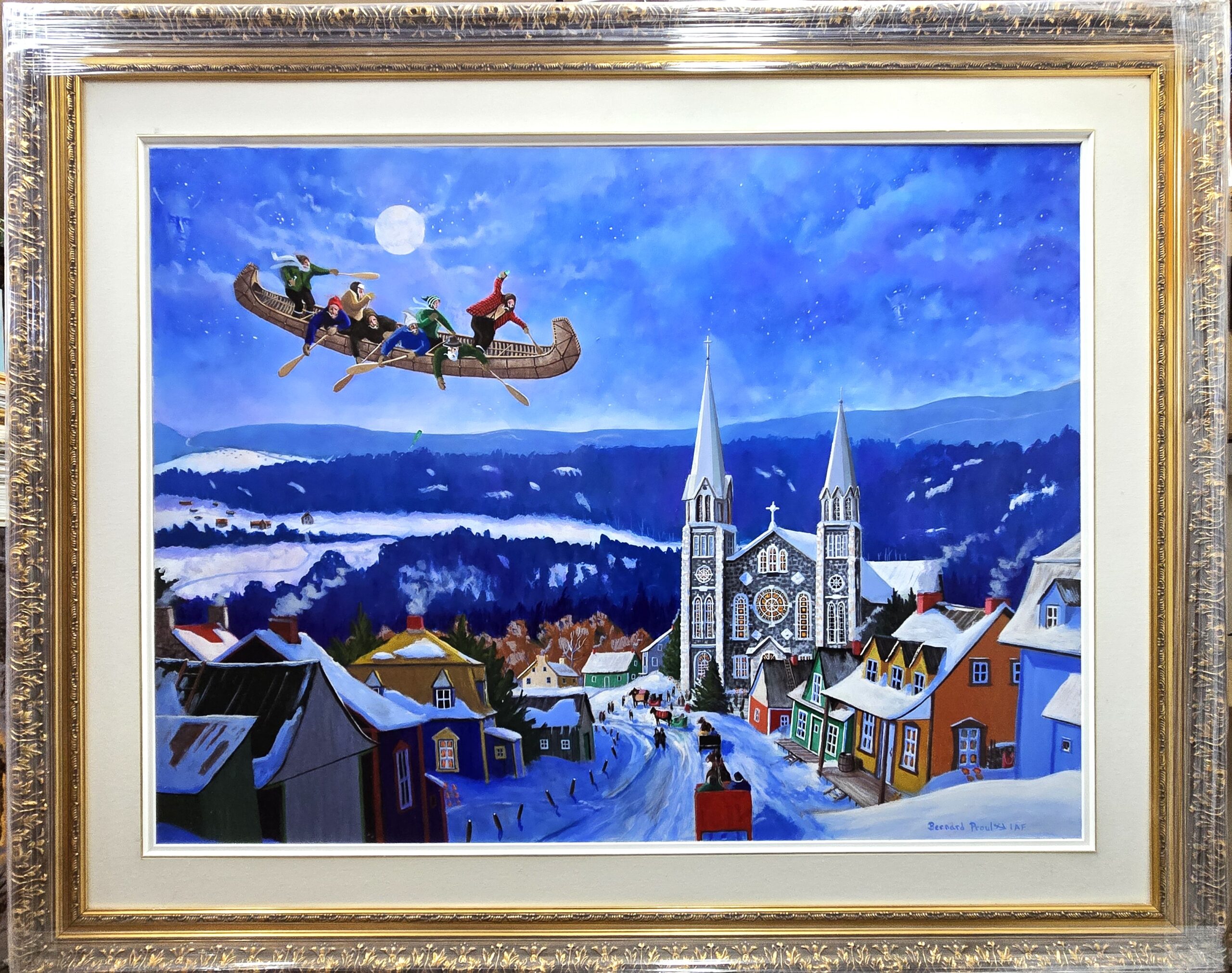 Bernard Proulx est un artiste peintre autodidacte né en 1954 à Percé, en Gaspésie, dont l’œuvre célèbre les couleurs, les côtes, la mer et l’air salin du Québec maritime. Très tôt, il trouve dans son milieu natal — le ressac, les bateaux, les bâtiments de pêche, les quais — non seulement un sujet mais une essence : celle du paysage vivant, vibrant, façonné par l’eau, le vent, le ciel. Maîtrisant la peinture figurative, il travail ses toiles sur le motif ou à partir de photos d’archives, en démarrant ses compositions par des esquisses au fusain ou à la craie, puis en déployant une palette lumineuse aux ciels stylisés. Un moment déterminant de sa carrière est sa reconnaissance formelle par l’Institut des Arts Figuratifs, ce qui crédibilise encore davantage sa démarche artistique passionnée. Ses œuvres sont aujourd’hui reconnues sur le marché de l’art et font partie de collections variées au Québec et ailleurs, témoignant d’un attrait durable pour ses visions marines. Ce qui distingue Bernard Proulx, c’est cette capacité à mêler le réalisme et la sensibilité : ses toiles racontent non seulement ce qu’il voit, mais ce qu’il ressent du bord des côtes — la lumière qui change, les vagues, le bois, le vent — en offrant au spectateur une expérience visuelle aussi enveloppante que poétique.