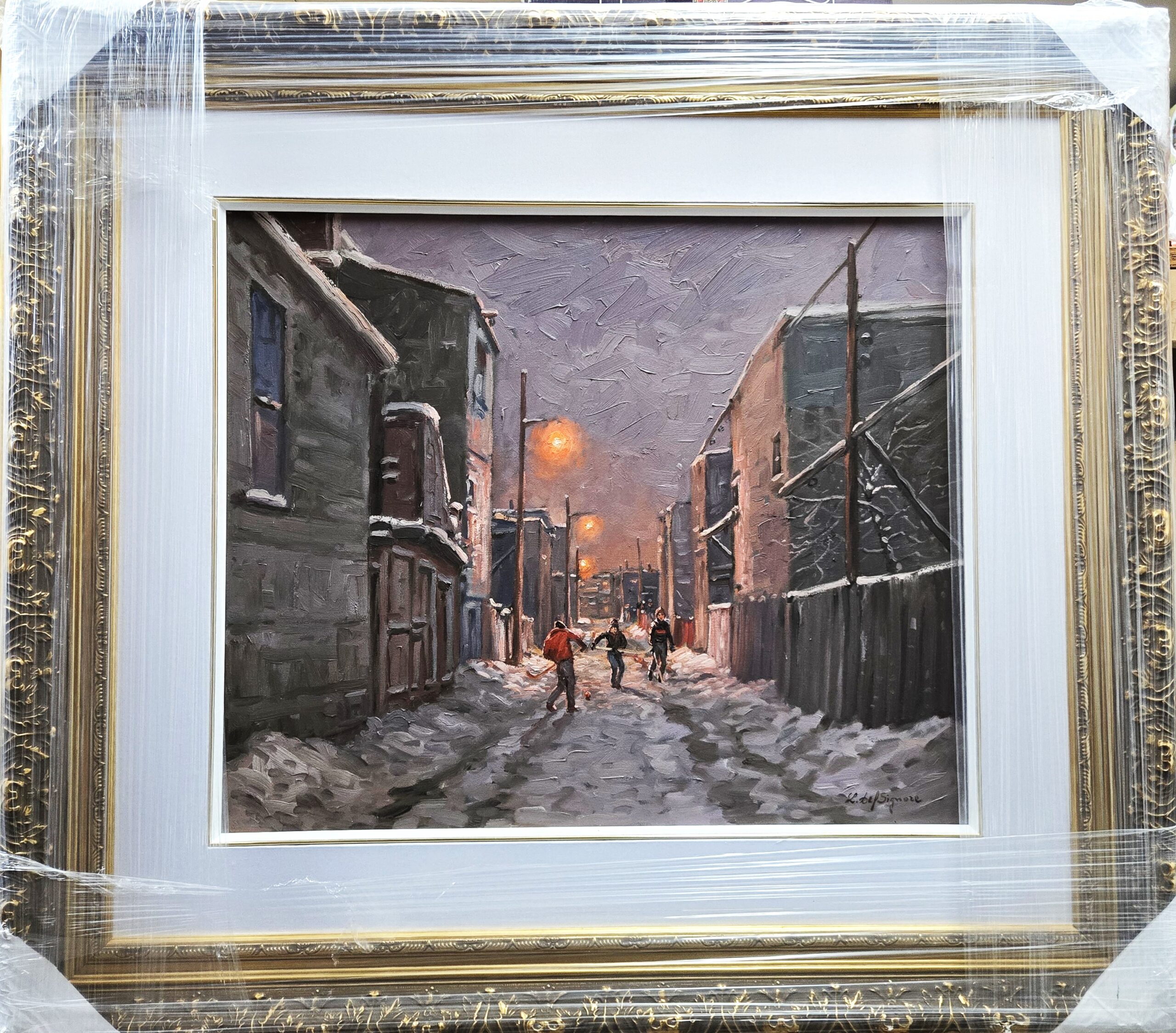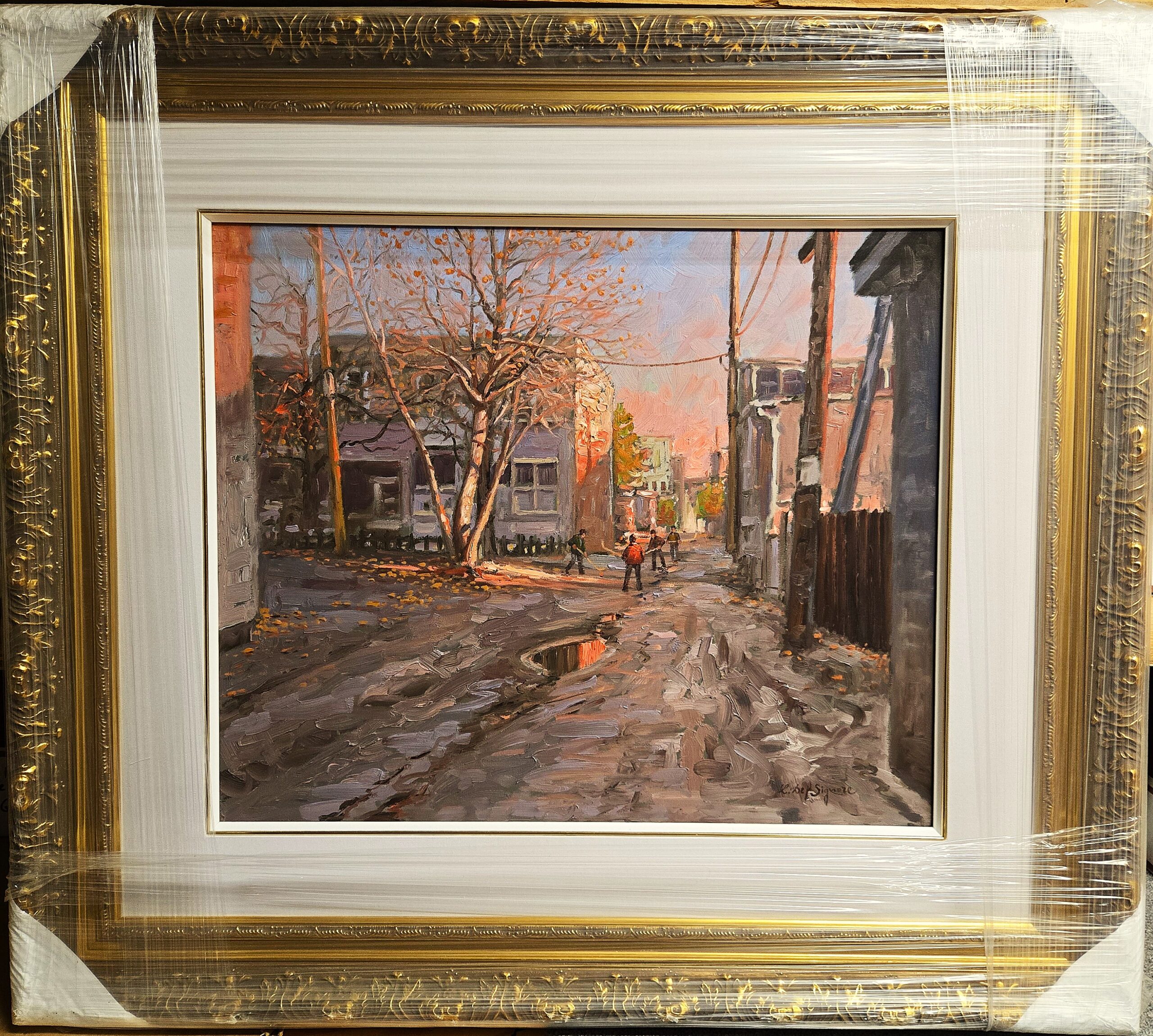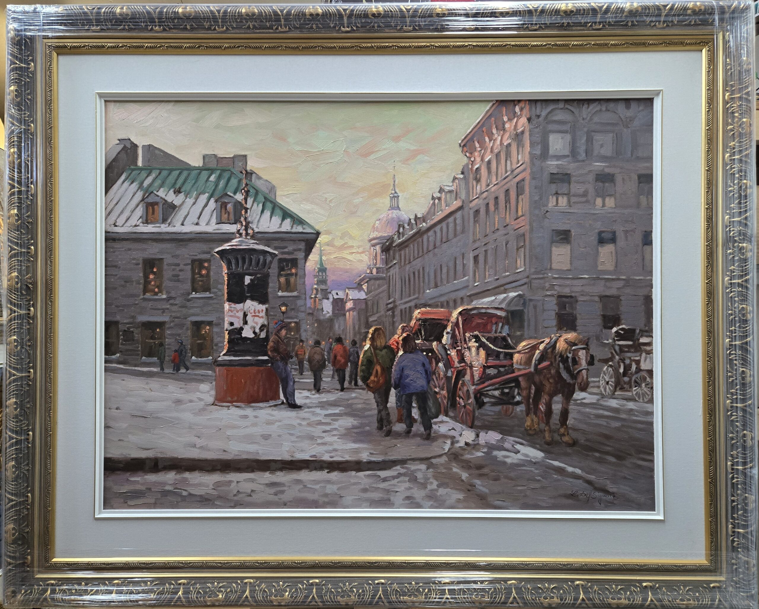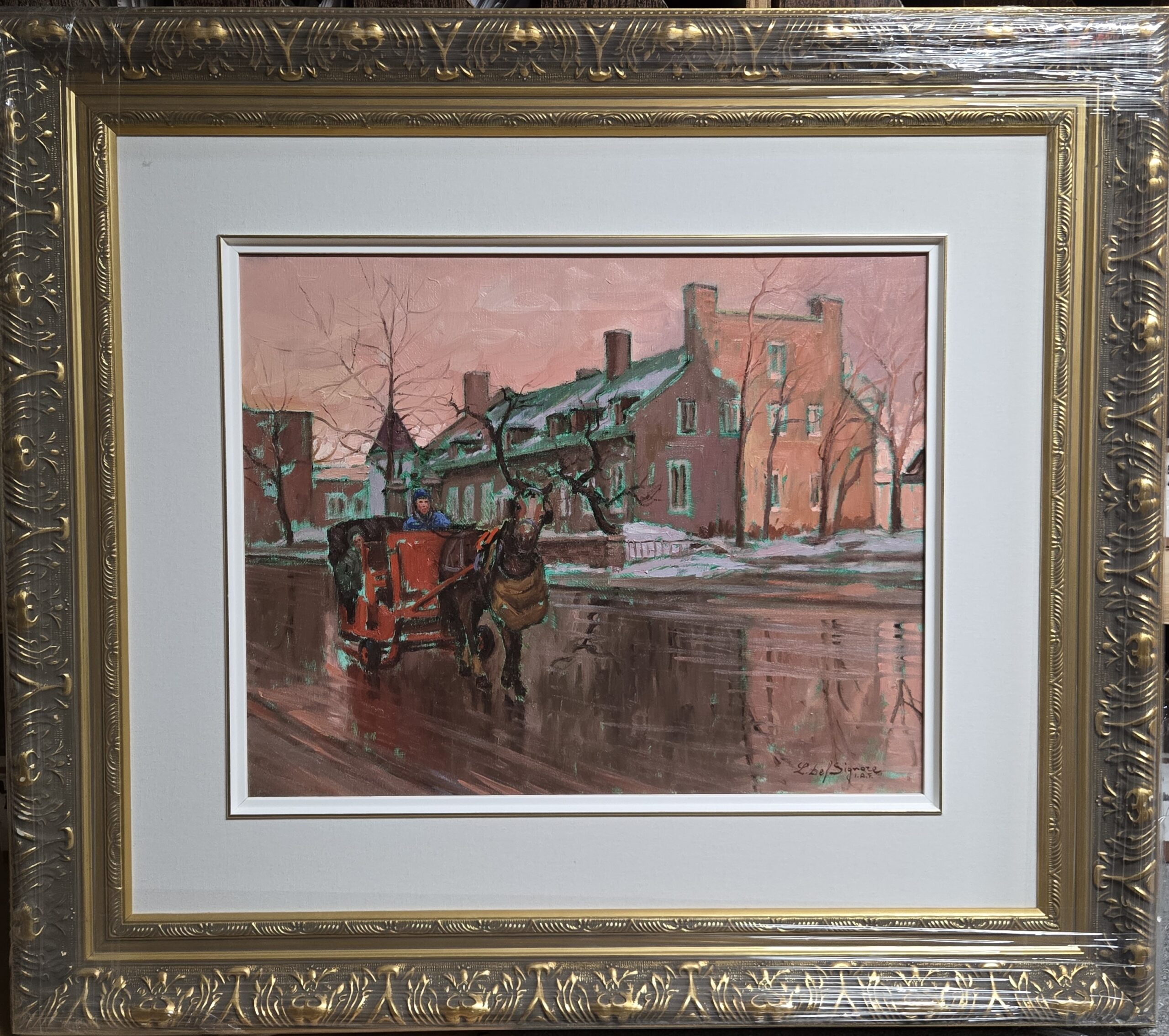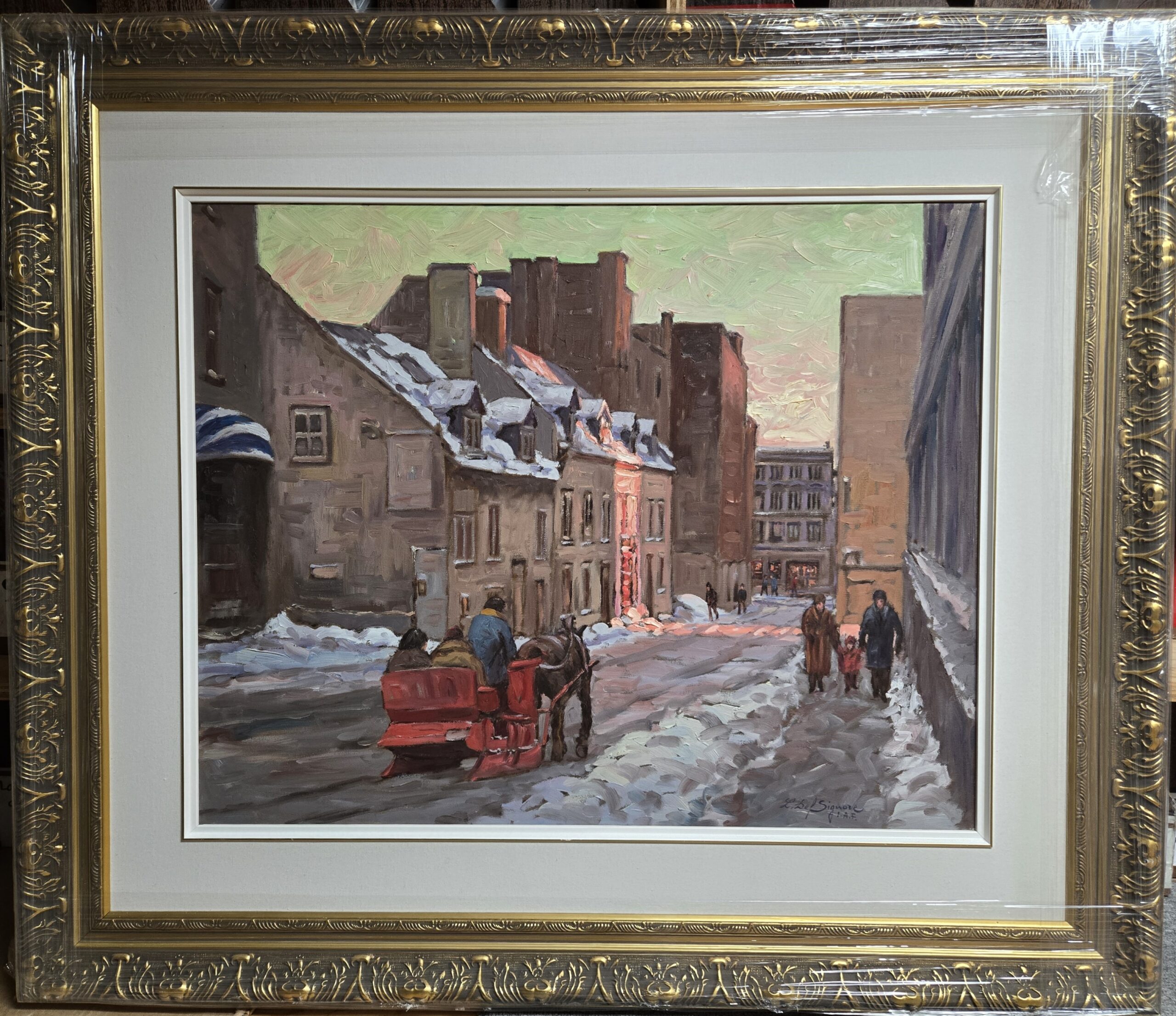 Littorio Del Signore s’est imposé comme un peintre attentif à la vie urbaine, transformant les scènes ordinaires en tableaux d’une intensité poétique. Né en Italie, formé aux Beaux-Arts en Europe, il choisit de s’établir à Montréal à la fin des années 1970 et oriente sa carrière vers une représentation figurative qui met en valeur les quartiers populaires, les saisons et les instants quotidiens. Ses toiles saisissent la lumière des hivers, les jeux d’enfants dans les ruelles, les promenades dans la neige ou les marchés de quartier, avec une palette riche et une composition structurée qui traduisent son héritage européen tout en rendant hommage à son milieu d’adoption. Parmi les faits marquants de sa carrière : une reconnaissance constante sur le marché de l’art, l’intégration de ses œuvres dans des collections variées, et une fidélité à un style qui a su séduire un large public. Del Signore illustre ainsi la rencontre entre une formation classique et une inspiration profondément ancrée dans la vie montréalaise, offrant une œuvre qui dégage chaleur, authenticité et sens du détail.