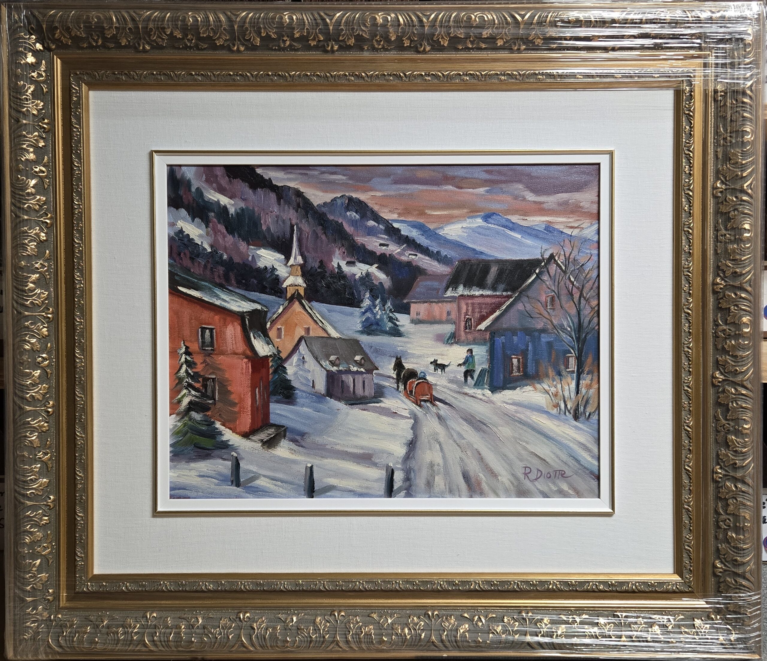 Raymond Diotte (1931–2018) s’est imposé comme un peintre canadien actif pendant plus d’un demi-siècle, dont la pratique soutenue et la constance lui ont valu une présence régulière sur le marché de l’art et dans des collections privées et institutionnelles. Sa trajectoire, ancrée à Montréal où il est né, témoigne d’un engagement de longue haleine envers la peinture et la vie artistique locale, jusque dans des activités publiques et rencontres de création qui rapprochent l’artiste de son milieu. On retient de lui une démarche figurative attentive aux ambiances et à la mémoire des lieux, servie par une facture directe et sans détour — une peinture qui privilégie l’évidence du sujet et la clarté de la composition, plutôt que l’esbroufe, et qui a su fidéliser un public au fil du temps.