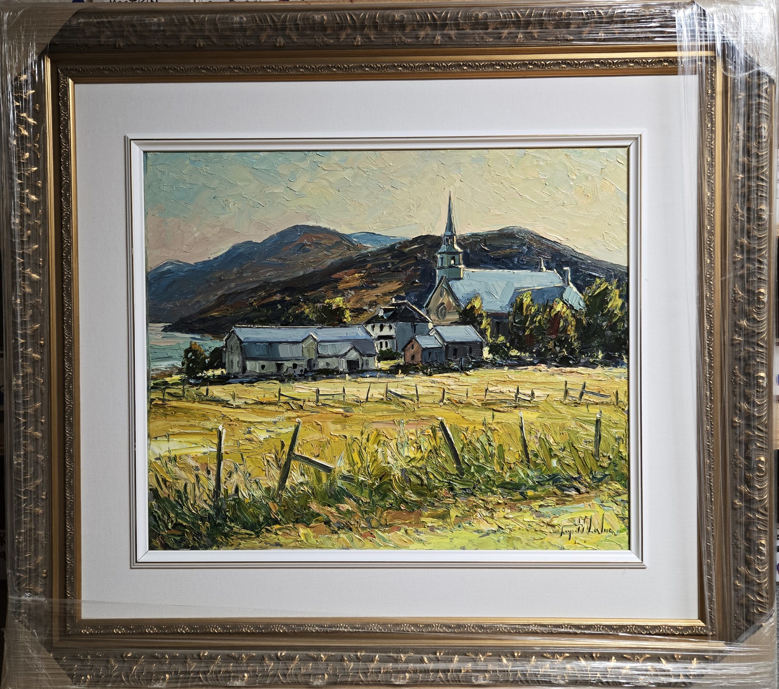 Raynald Leclerc, né à Saint-Michel de Bellechasse en 1961, est un peintre québécois dont l’œuvre s’ancre dans le paysage avec une intensité lumineuse et une énergie picturale immédiatement reconnaissable. Autodidacte, il décide au tournant des années 1990 de se consacrer entièrement à la peinture, après avoir exploré différents chemins professionnels. Son style se définit par l’utilisation expressive du couteau à peindre, qui lui permet de créer des textures riches et vibrantes, où la matière picturale devient aussi signifiante que le sujet représenté. Ses toiles rendent hommage aux paysages de Charlevoix, de la Côte-de-Beaupré, de Bellechasse et d’autres régions du Québec, en exaltant les couleurs, les ciels changeants, les lumières intenses et la force des saisons. Un fait marquant de sa carrière est cette capacité à transformer des lieux familiers en scènes grandioses, où le spectateur ressent presque physiquement le vent, la neige, la chaleur ou la lumière. Ses œuvres sont reconnues sur le marché de l’art et se retrouvent dans de nombreuses collections privées et institutionnelles, témoignant de leur rayonnement. Ce qui distingue Leclerc, c’est une approche à la fois instinctive et maîtrisée : chaque coup de couteau traduit un souffle, une énergie qui fait du paysage québécois non pas une simple représentation, mais une expérience sensorielle et émotive.