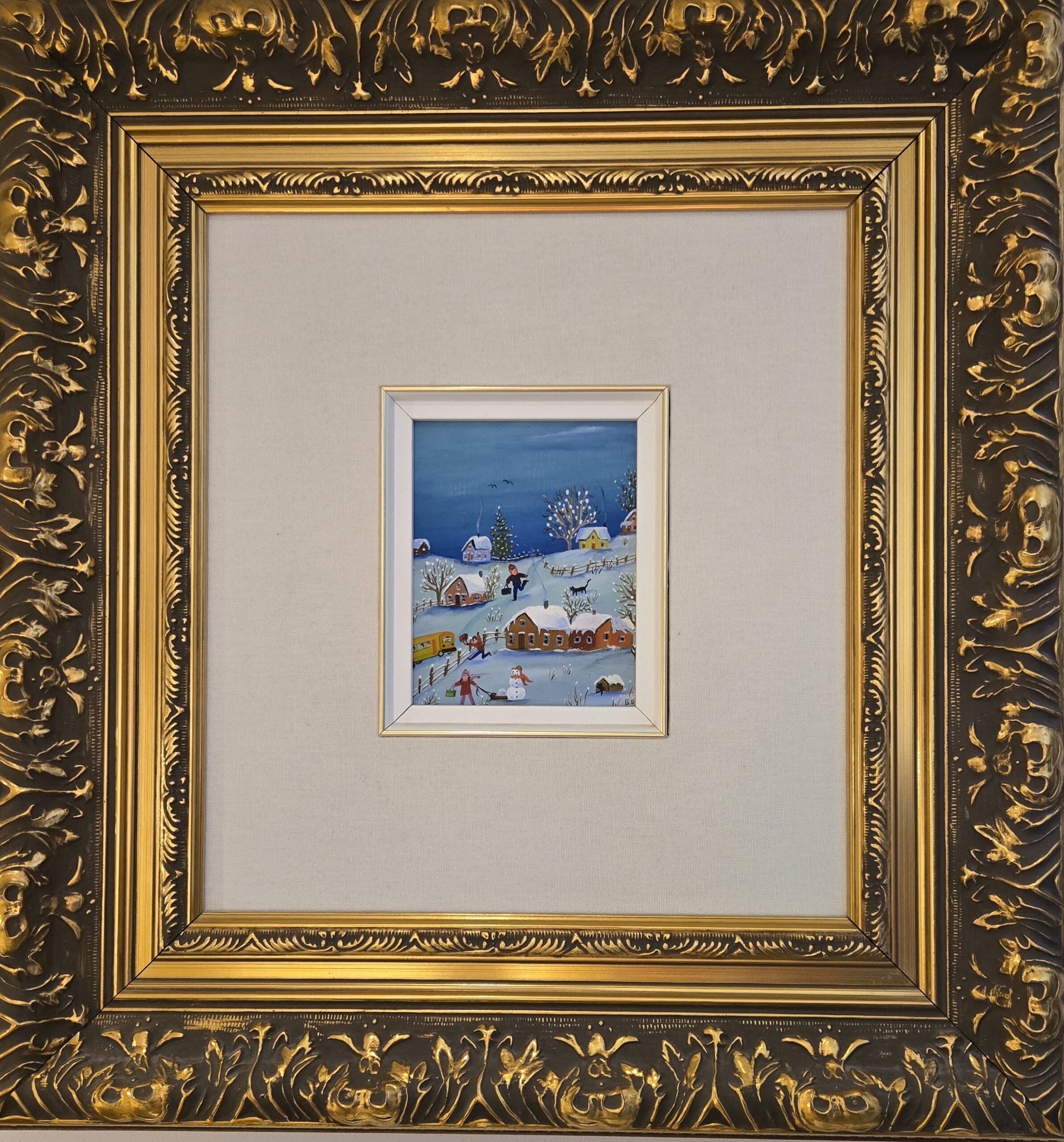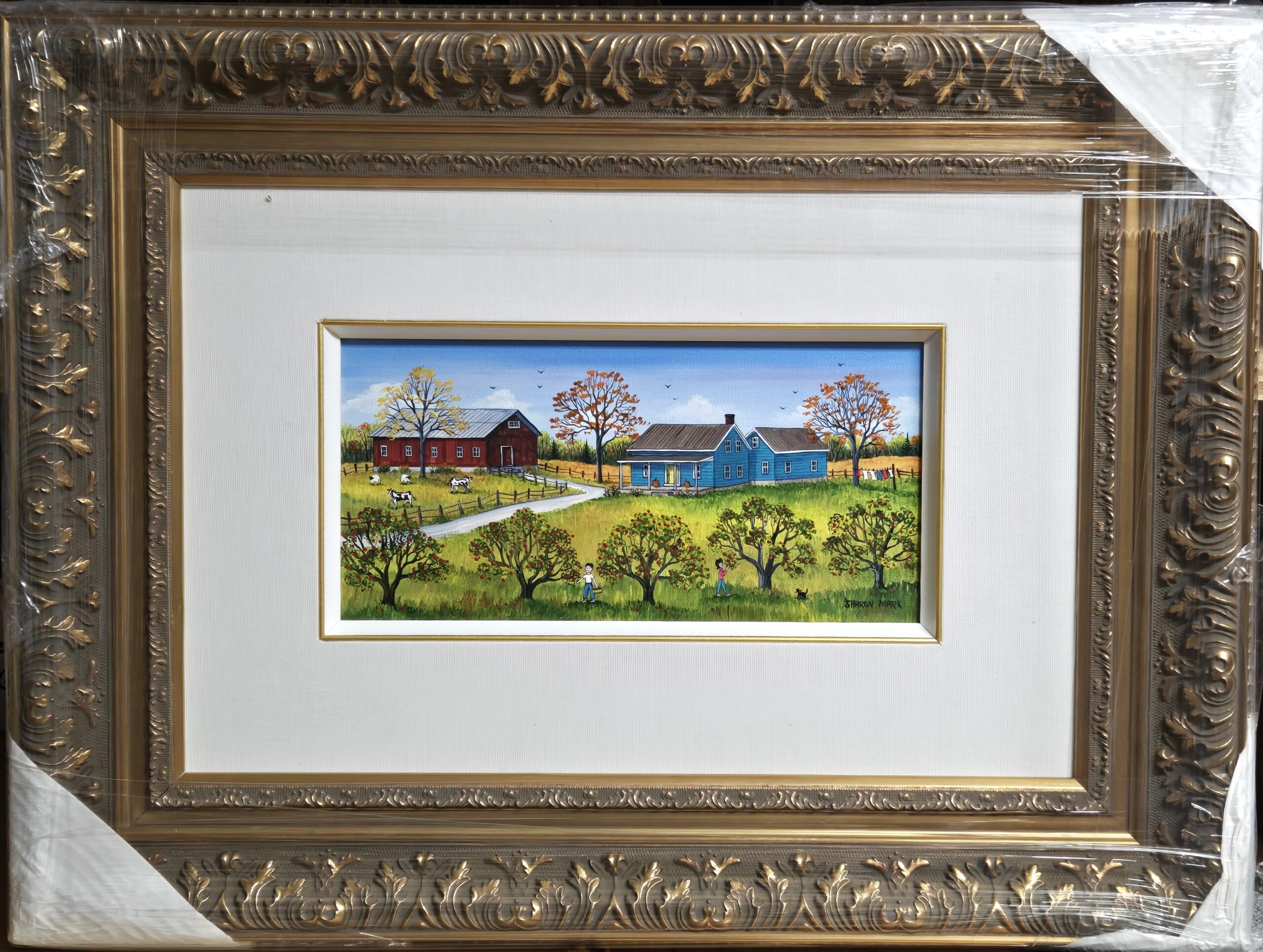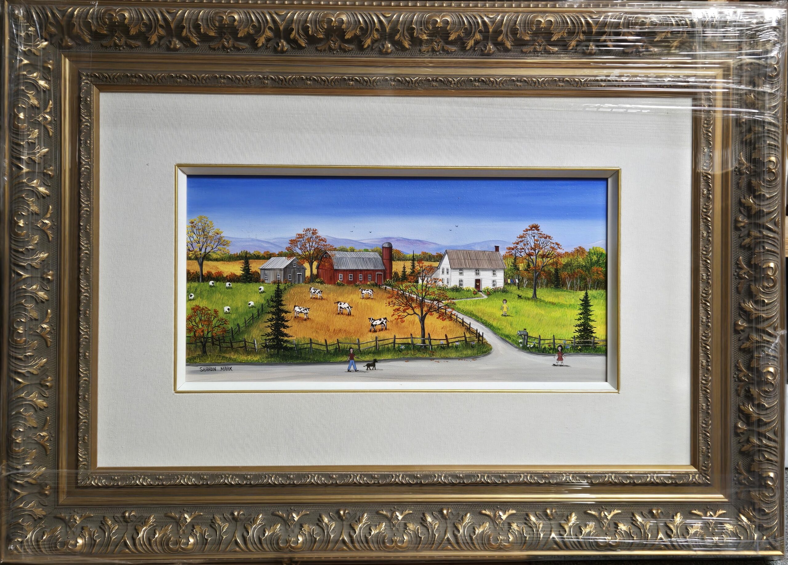Sharon Mark, née en 1955 et résidant toujours en Hemmingford, Québec, est une peintre autodidacte qui puise son inspiration dans le paysage rural et les souvenirs chaleureux de la vie de campagne. Depuis les années 1980, elle utilise surtout l’acrylique pour représenter des scènes tranquilles : vieux bâtiments, granges, animaux, vergers, enfants au jeu — un univers naïf/folk empreint de nostalgie et de paix. Un fait marquant dans sa trajectoire : elle commence à exposer publiquement dès 1992, ce qui amorce la période où son travail se répand et touche un public plus large. Ses œuvres évoquent un monde romantique de partage familial, de lumière douce, de moments simples suspendus dans le temps — on ressent un peu le parfum des champs, le calme de l’hiver, le charme de la ruralité. Son art est aujourd’hui reconnu sur le marché de l’art et intégré à des collections privées et institutionnelles, attestant de sa résonance durable. Ce qui distingue Sharon Mark, c’est sa capacité à créer non seulement une image, mais une atmosphère réconfortante, où la mémoire personnelle et la beauté simple se rencontrent.